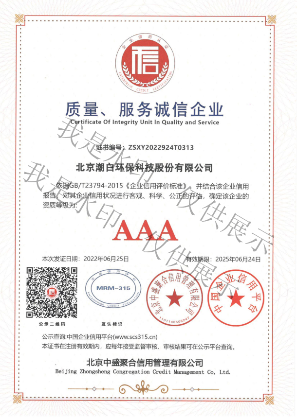 北京潮白环保科技股份有限公司是一家专业从事环境保护与资源循环利用的综合性高新技术企业,注册资金5178万元,成立伊始就组建顾问专家团队加强创新引领,拥有高级、中级职称人员及各类技术人员占比超过50%。